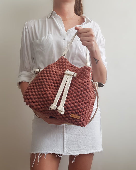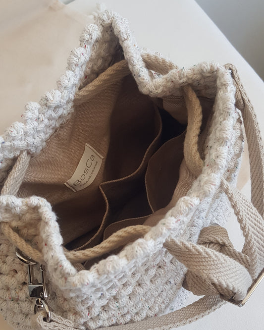 Caracterizado por su forma redondeada y cierre de cordón que le aporta la apariencia clásica de este estilo. Equipado con una asa corta acolchada para la mano o el codo, y otra ajustable para llevarlo cómodamente en el hombro o cruzado.